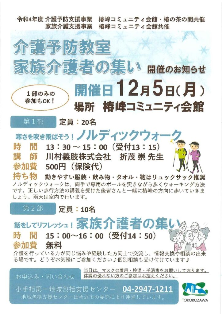 2022年12月5日 小手指 第1 【報告】『ノルディックウォーク教室・家族介護者の集い』 〇日時:令和4年12月5日(月)13時30分~16時〇会場:椿峰コミュニティ会館〇講師:川村義肢株式会社 折茂 崇 先生 ご来場いただいた皆様、川村義肢の折茂先生 ありがとうございました! 投稿者について 小手指 第1