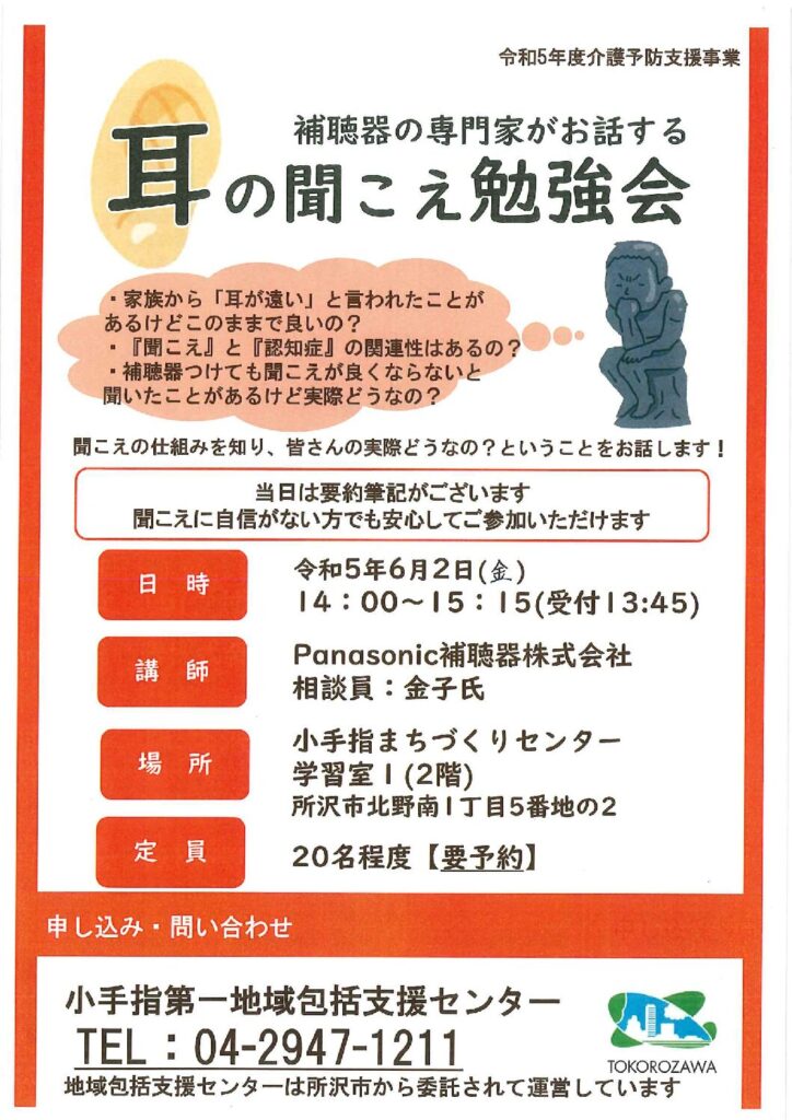 2023年6月2日 小手指 第1 【報告】『耳の聞こえ勉強会』無事に終了いたしました! 令和5年度 介護予防支援事業〇日時:令和5年6月2日(金)14時~15時15分〇会場:小手指まちづくりセンター 学習室1号〇講師:Panasonic 補聴器株式会社 相談員 金子 先生 ご来場いただいた皆様ありがとうございました! 投稿者について 小手指 第1