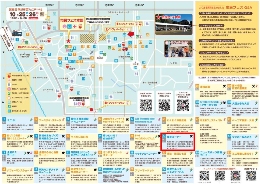 「福祉コーナー」:市内のボランティア団体や福祉施設の活動内容を広く紹介!飲食、物販、展示などを通して所沢の福祉を体験してみてください!