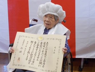 100歳という大きな節目にご家族、他のご入居者、職員と一緒に