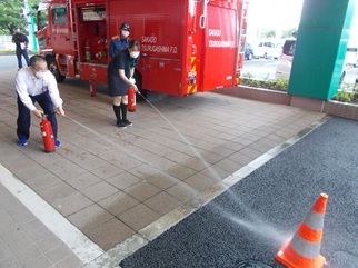 消防設備点検、避難誘導、水消火器・屋内消火栓訓練を行いました。